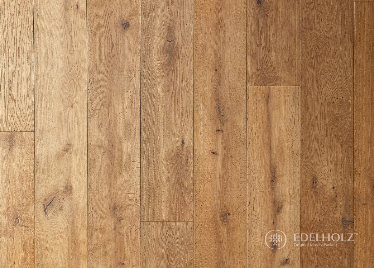 Eine sehr beliebte Sortierung, die durch natürliche Lebendigkeit mit charakterstarken Ästen und Rissen besticht, was besonders bei unseren großformatigen Eichendielen ein spannendes Oberflächenbild erzeugt. Sorgfältig gekittete kleine bis größere Äste und vereinzelte wenige Splintanteile sorgen im Zusammenspiel mit markanten Holzstrukturen und einem lebhaften Farbspiel für einen Facettenreichtum, der von EDELHOLZ-Kunden sehr geschätzt wird.