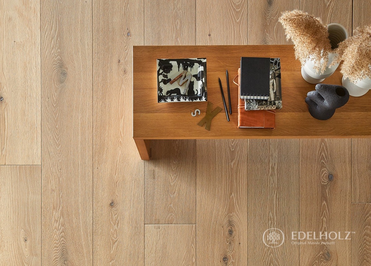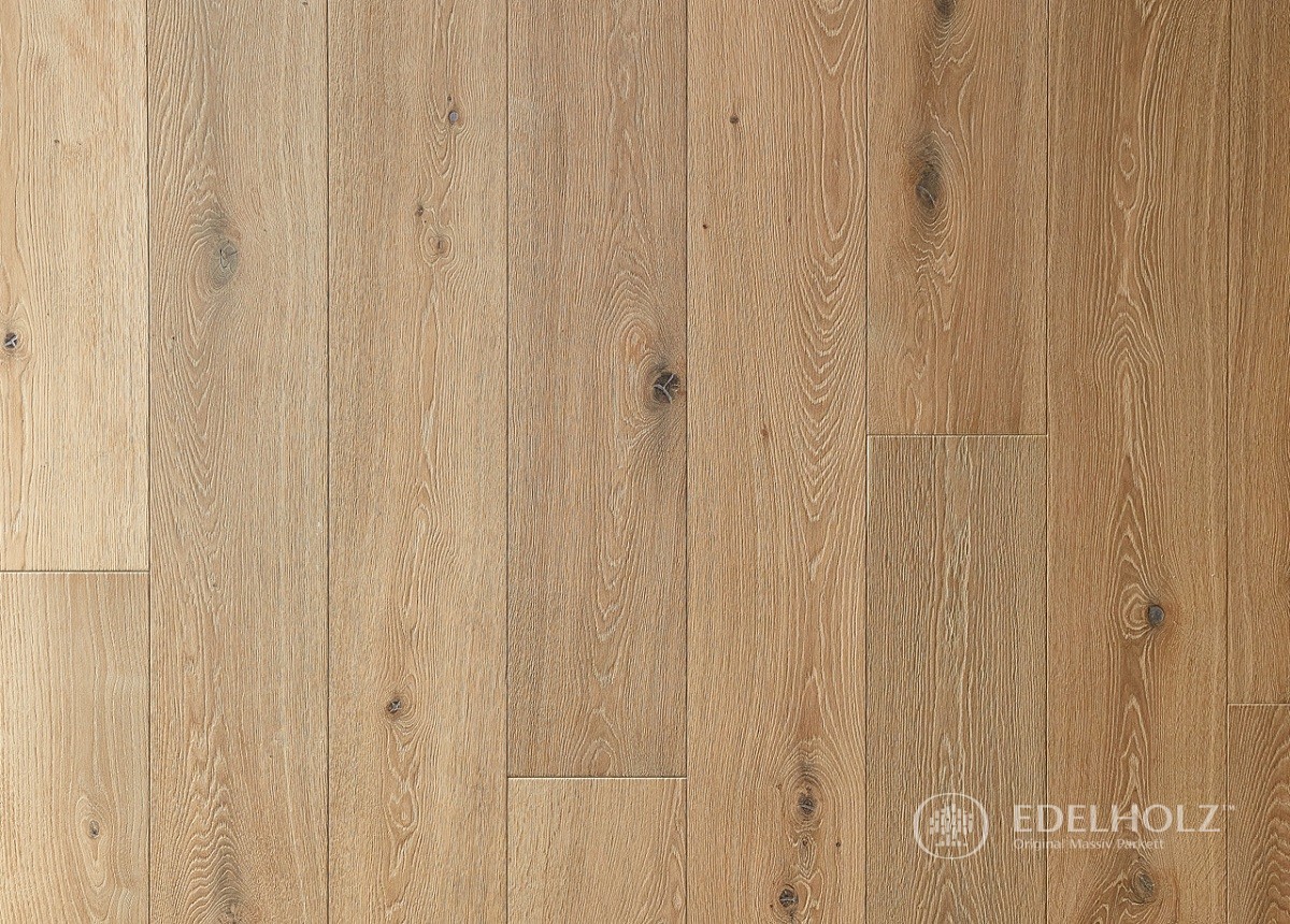 Eine sehr beliebte Sortierung, die durch natürliche Lebendigkeit mit charakterstarken Ästen und Rissen besticht, was besonders bei unseren großformatigen Eichendielen ein spannendes Oberflächenbild erzeugt. Sorgfältig gekittete kleine bis größere Äste und vereinzelte wenige Splintanteile sorgen im Zusammenspiel mit markanten Holzstrukturen und einem lebhaften Farbspiel für einen Facettenreichtum, der von EDELHOLZ-Kunden sehr geschätzt wird.