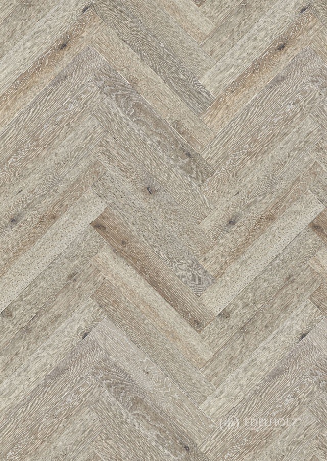 Die großen Stäbe von EDELHOLZ Fischgrät unterscheiden sich völlig von den kleinen Stäben der alten Zeiten. Das hochqualitative, elegante Chevron Parkett wirkt größer als üblich, deshalb erweitert es den Raum und sorgt für eine großartige Erscheinung. Die zahlreichen Verlegemuster und die verschiedenen Oberflächen verleihen dem Eichenboden einen individuellen Charme. Im Angebot von EDELHOLZ finden Sie sowohl rustikale, leicht gealterte, als auch moderne, fein ausgeführte Fischgrätparkette mit großen Stäben.