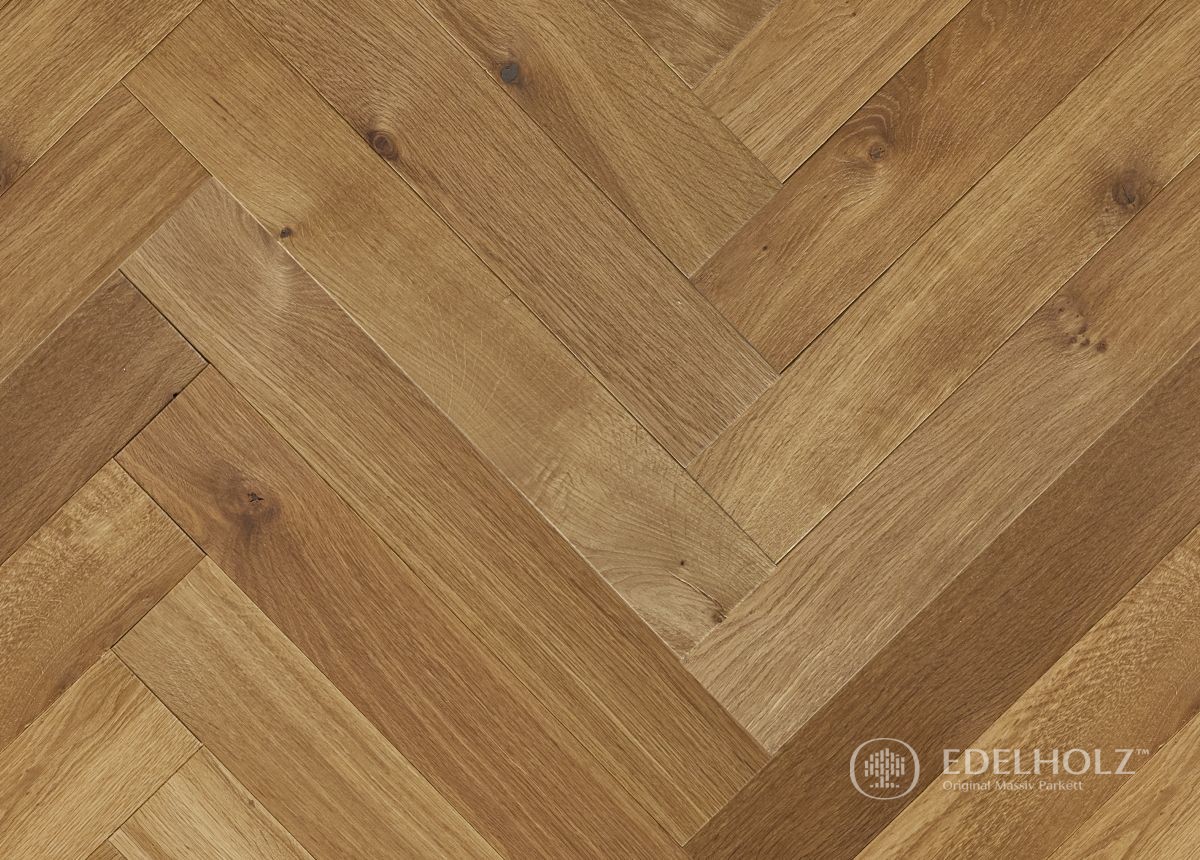 Die nahezu astfreie Oberfläche unserer edelsten Sortierung strahlt Eleganz und Ruhe aus. Die dezente Maserung und das einheitliche Farbbild verstärken diesen Effekt noch zusätzlich und machen sie zum Favoriten insbesondere bei EDELHOLZ Fischgrät- und Chevron-Parkettböden.