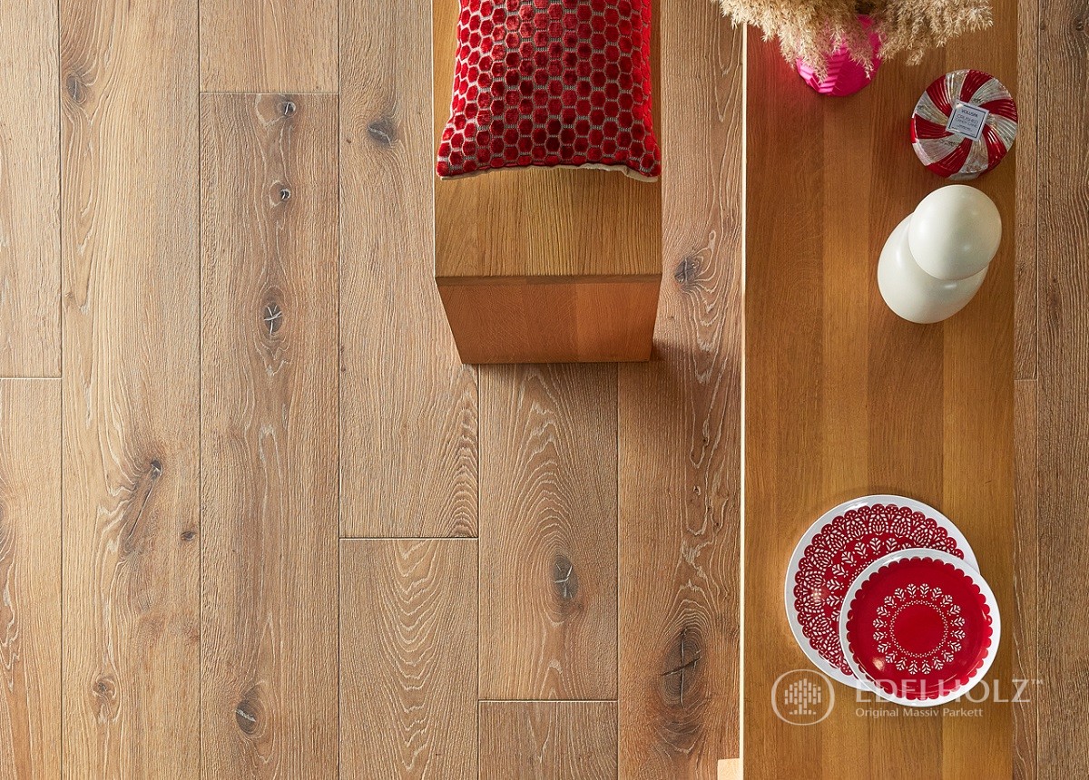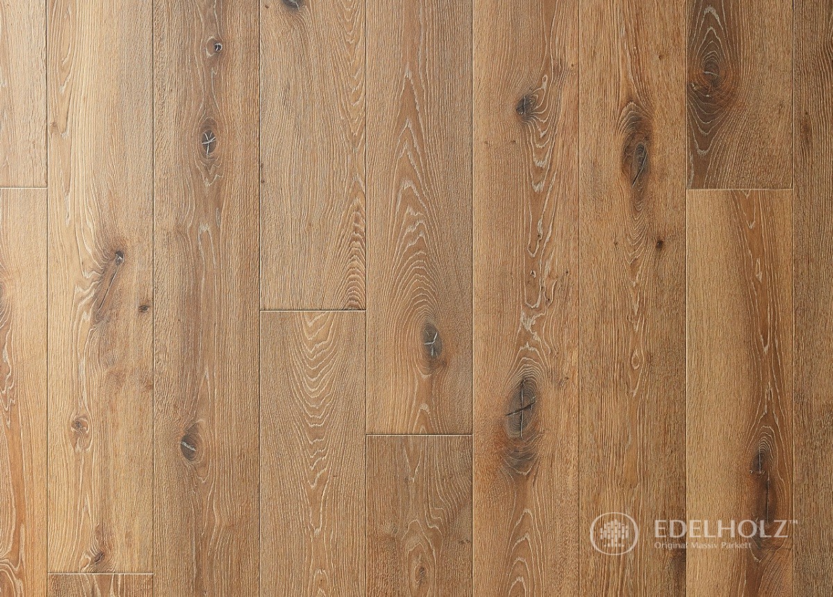Eine sehr beliebte Sortierung, die durch natürliche Lebendigkeit mit charakterstarken Ästen und Rissen besticht, was besonders bei unseren großformatigen Eichendielen ein spannendes Oberflächenbild erzeugt. Sorgfältig gekittete kleine bis größere Äste und vereinzelte wenige Splintanteile sorgen im Zusammenspiel mit markanten Holzstrukturen und einem lebhaften Farbspiel für einen Facettenreichtum, der von EDELHOLZ-Kunden sehr geschätzt wird.