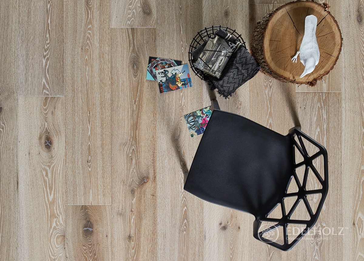 Eine sehr beliebte Sortierung, die durch natürliche Lebendigkeit mit charakterstarken Ästen und Rissen besticht, was besonders bei unseren großformatigen Eichendielen ein spannendes Oberflächenbild erzeugt. Sorgfältig gekittete kleine bis größere Äste und vereinzelte wenige Splintanteile sorgen im Zusammenspiel mit markanten Holzstrukturen und einem lebhaften Farbspiel für einen Facettenreichtum, der von EDELHOLZ-Kunden sehr geschätzt wird.