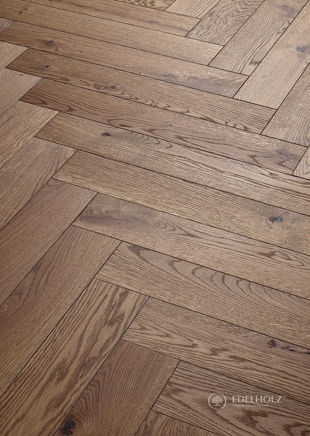 Fischgrätparkett aus Eiche, gefertigt aus einem Material. Eine traditionelle Lösung für alle, die die klassischen Fußböden lieben. Das massive Fischgrätparkett ist ideal für historische Renovierungsarbeiten.