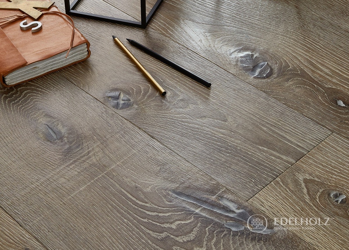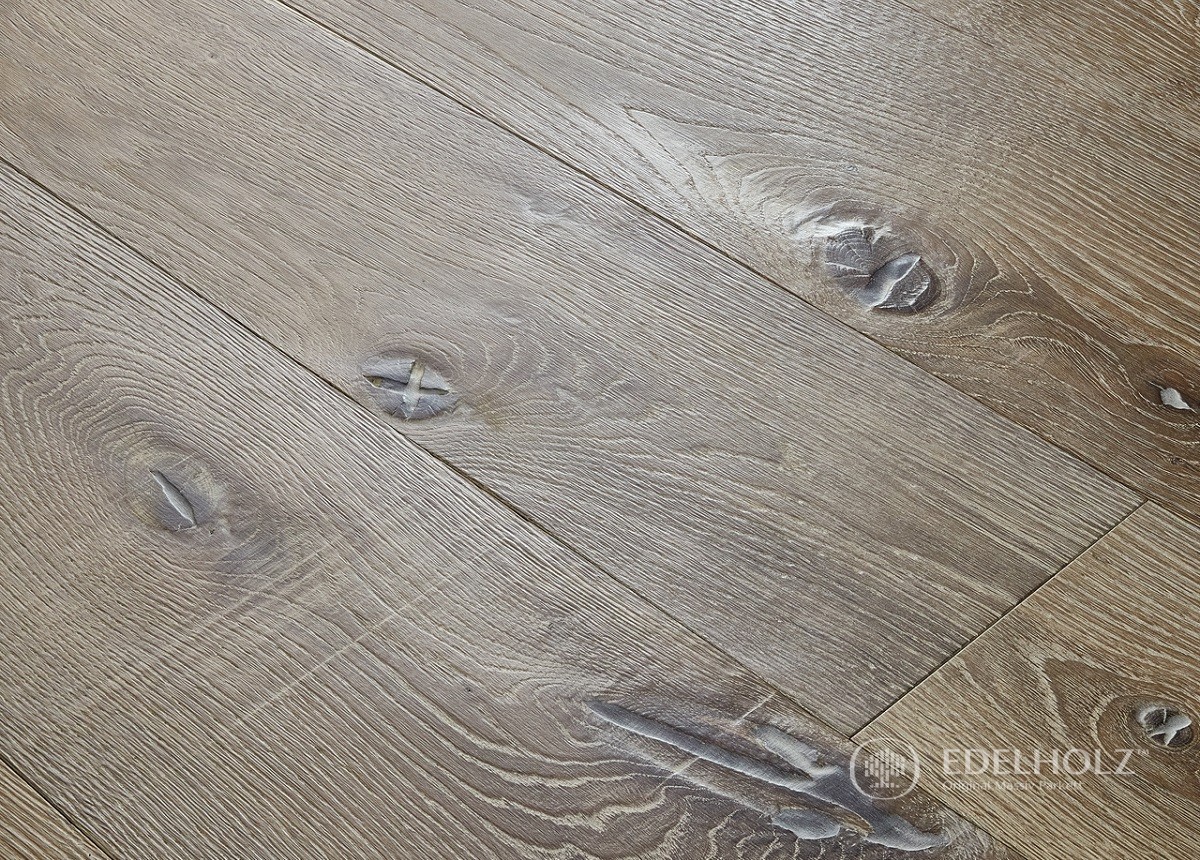 Diese Sortierung, die den optisch wie haptisch beeindruckend schönen EDELHOLZ-Böden mit luftgetrockneter Oberfläche vorbehalten ist, betont die bei dieser speziellen Trocknungsart entstehenden organischen Oberflächentexturen, deren Authentizität nur bestes Eichenholz hervorzubringen vermag. Ausgewählte, von Hand gespachtelte Äste und Risse unterstreichen zudem ausdrucksstark die Schönheit und Einzigartigkeit der luftgetrockneten Oberfläche.