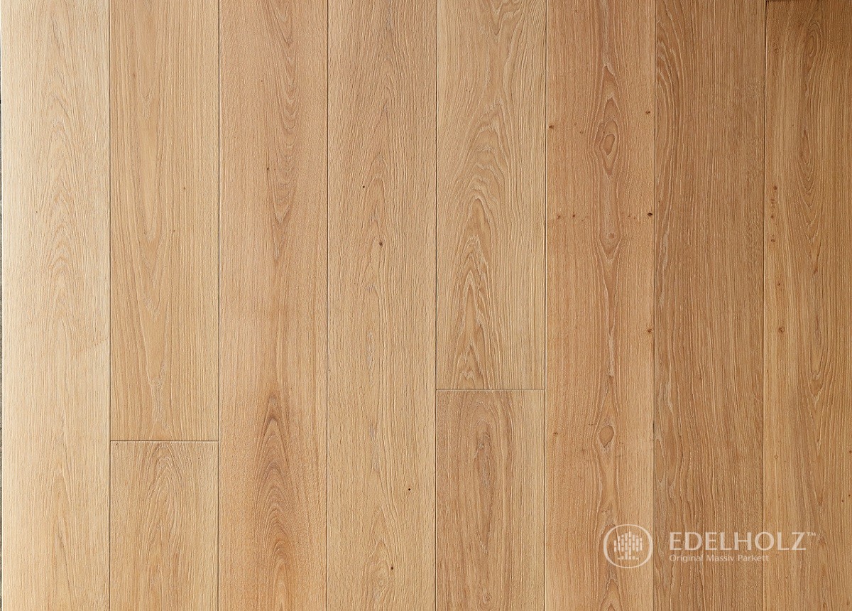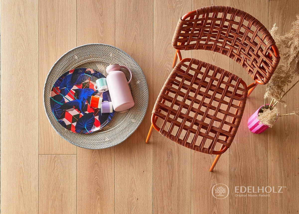 Die nahezu astfreie Oberfläche unserer edelsten Sortierung strahlt Eleganz und Ruhe aus. Die dezente Maserung und das einheitliche Farbbild verstärken diesen Effekt noch zusätzlich und machen sie zum Favoriten insbesondere bei EDELHOLZ Fischgrät- und Chevron-Parkettböden.