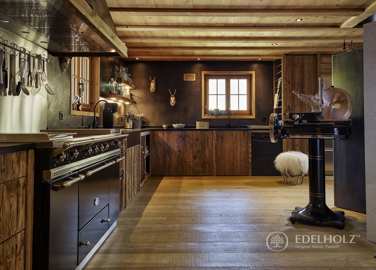 This flooring was made to order for a very special project. The atmosphere of such alpine houses always seems to be more special than usual, and gives the impression of a fairy tale. These spaces often require straight planks with unusual solutions. The Colorado surface design shown here is a combination of several visual and structural elements according to the customer's needs. This unique floor has the silky gloss of Colorado surfaces, complemented by saw marks patterns. The flooring was treated with special grey oil and premium hardwax, resulting in its unique colour scheme. The inimitable overall picture speaks for itself.