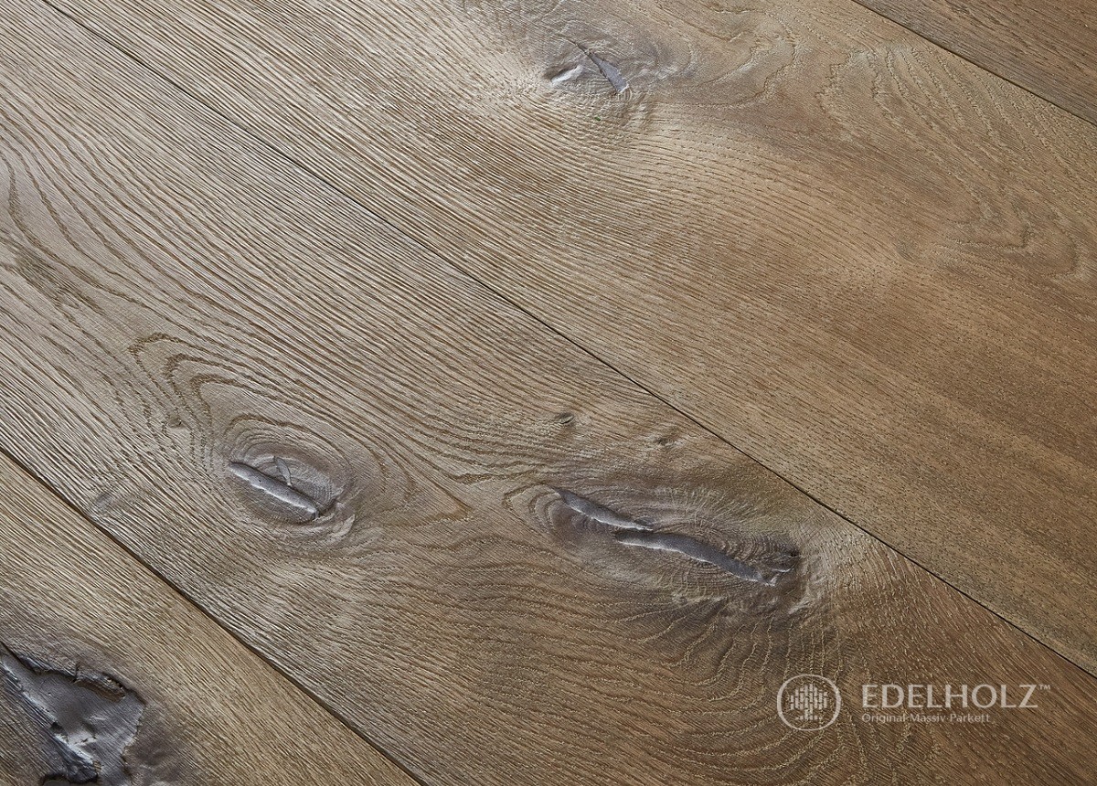 Questa classificazione, riservata ai pavimenti EDELHOLZ di grande impatto visivo e tattile con superficie essiccata all'aria, enfatizza le texture materiche delle superfici create da questo speciale metodo di essiccazione, la cui autenticità può essere prodotta solo dal miglior legno di quercia. Anche i nodi e le crepe, selezionati e stuccati a mano, sottolineano in modo espressivo la bellezza e l'unicità della superficie.