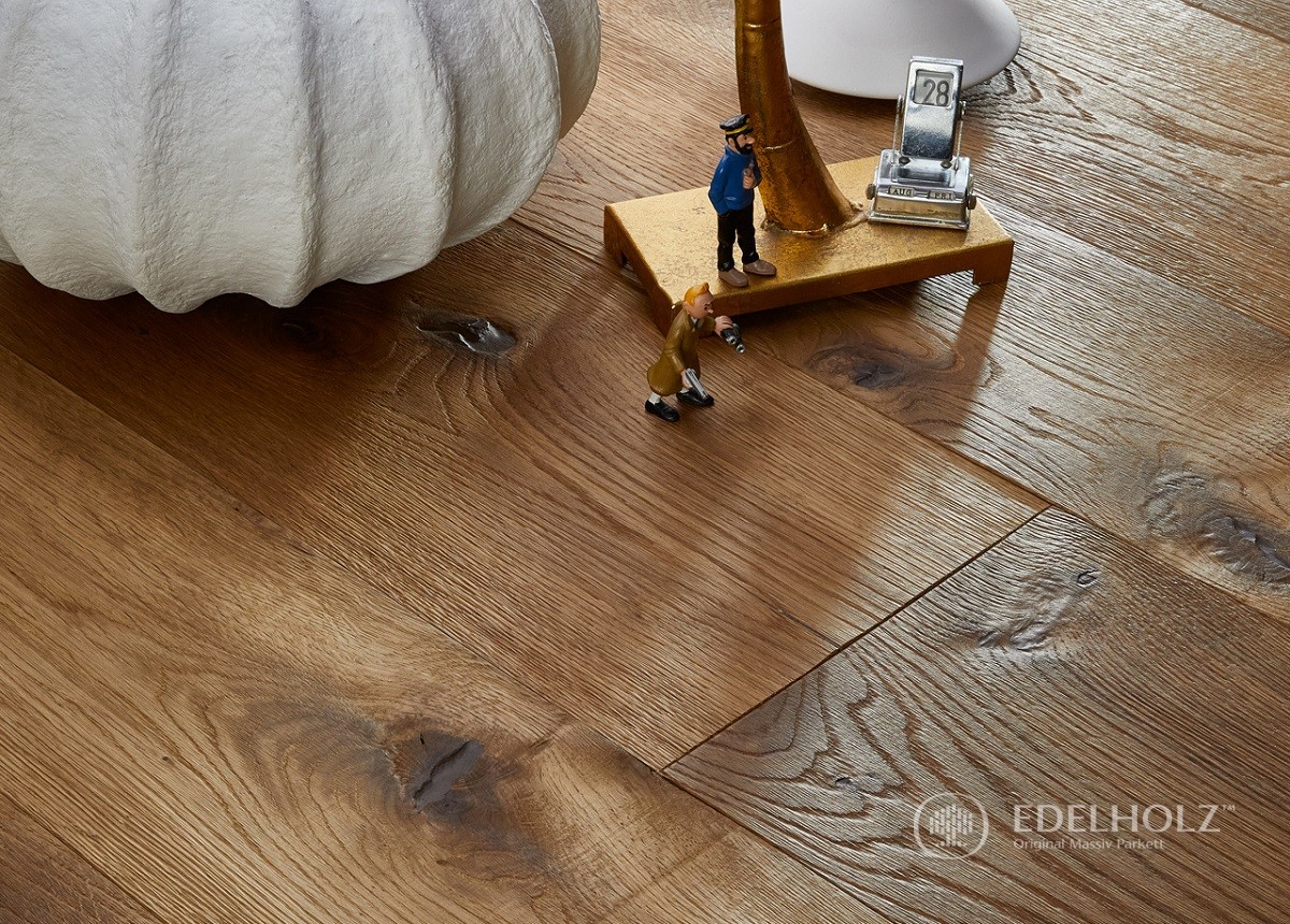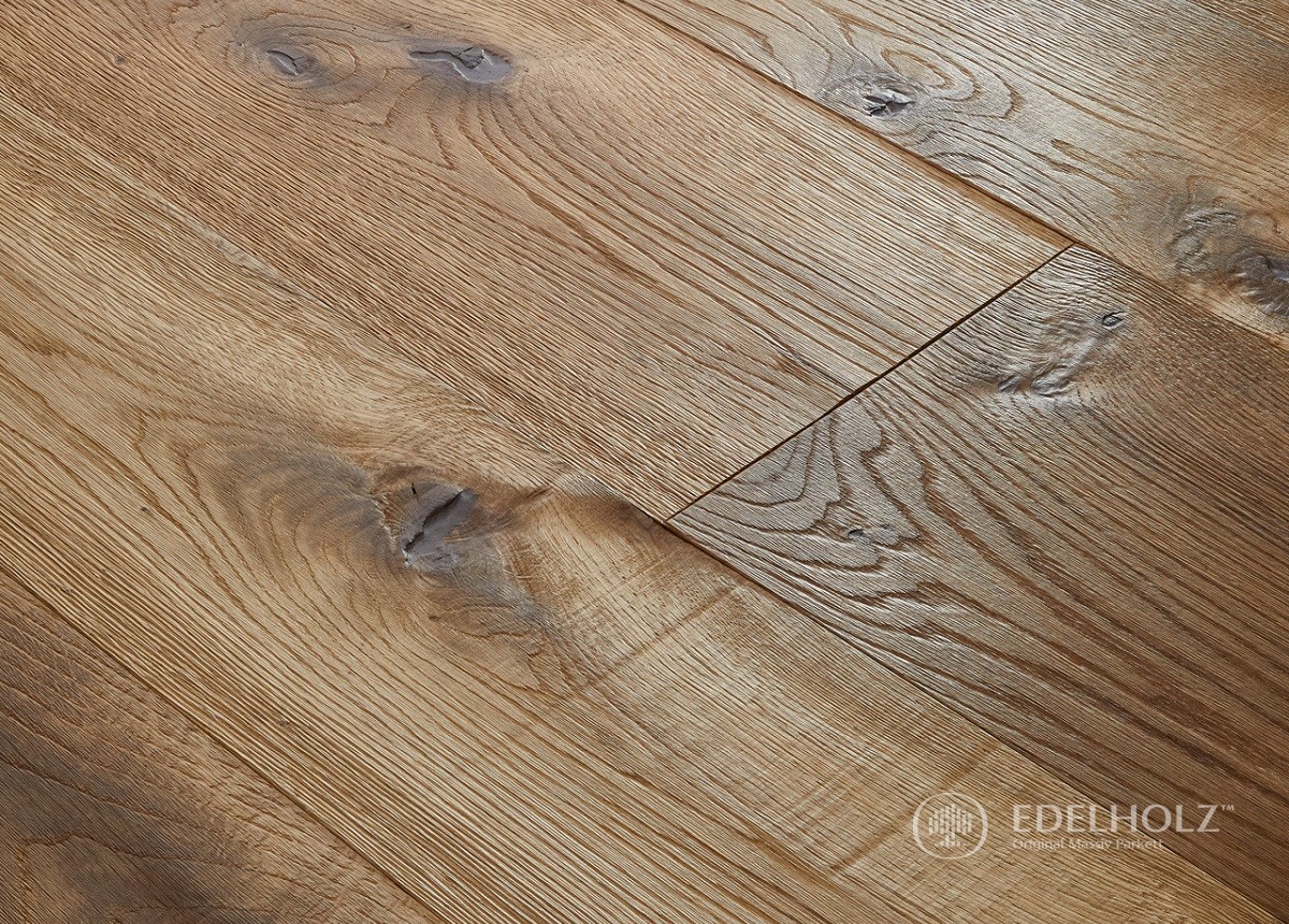 Questa classificazione, riservata ai pavimenti EDELHOLZ di grande impatto visivo e tattile con superficie essiccata all'aria, enfatizza le texture materiche delle superfici create da questo speciale metodo di essiccazione, la cui autenticità può essere prodotta solo dal miglior legno di quercia. Anche i nodi e le crepe, selezionati e stuccati a mano, sottolineano in modo espressivo la bellezza e l'unicità della superficie.
