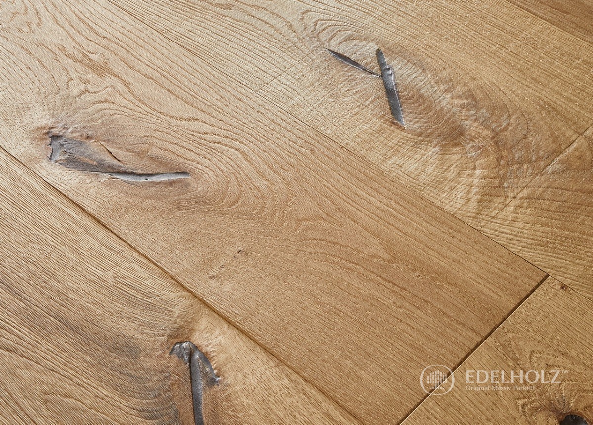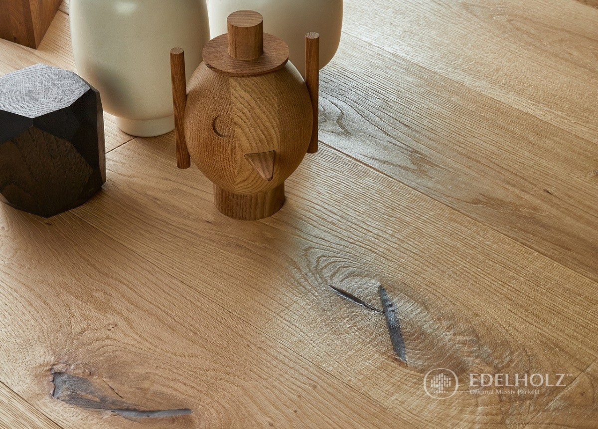Questa classificazione, riservata ai pavimenti EDELHOLZ di grande impatto visivo e tattile con superficie essiccata all'aria, enfatizza le texture materiche delle superfici create da questo speciale metodo di essiccazione, la cui autenticità può essere prodotta solo dal miglior legno di quercia. Anche i nodi e le crepe, selezionati e stuccati a mano, sottolineano in modo espressivo la bellezza e l'unicità della superficie.