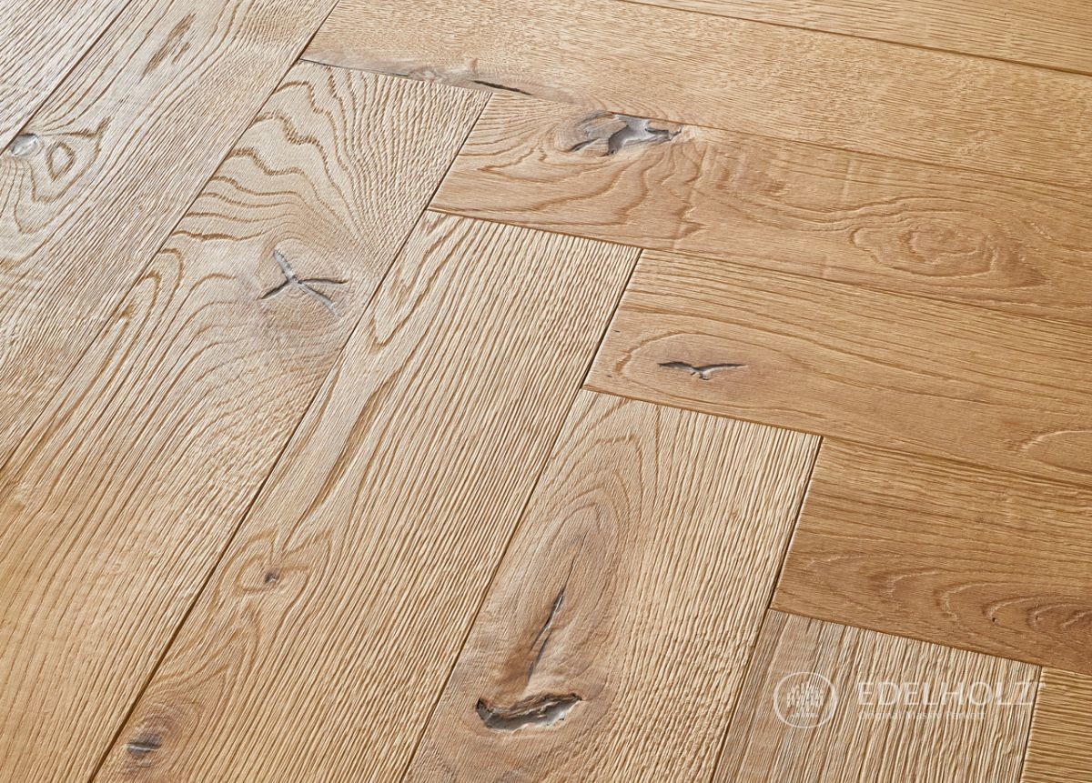 Questo parquet a spina di pesce in rovere massello è ricavato da un unico pezzo di legno. Parquet a spina di pesce tradizionale offre un'eccellente opportunità per gli amanti dei pavimenti classici e rappresenta una soluzione ideale per la ristrutturazione e il restauro di interni storici.
