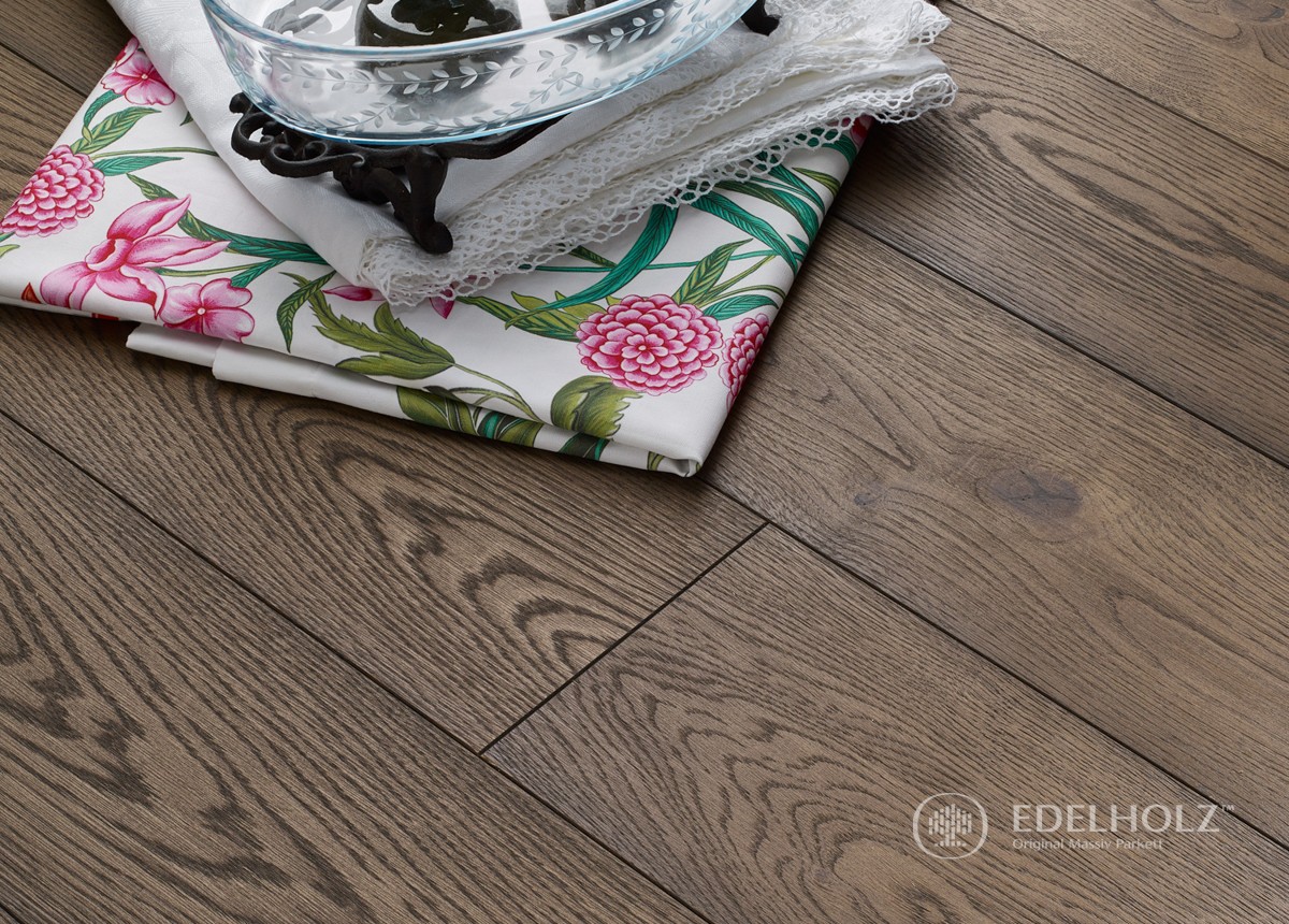 Una qualità molto apprezzata che colpisce per la sua naturale vivacità con nodi e crepe, che crea un aspetto superficiale emozionante, specialmente con le nostre plance di rovere di grande formato. Nodi piccoli e grandi, riparati con cura e qualche pezzo occasionale di alburno, combinati con texture di legno distintive e un vivace gioco di colori, creano una ricca diversità che è molto apprezzata dai clienti EDELHOLZ.