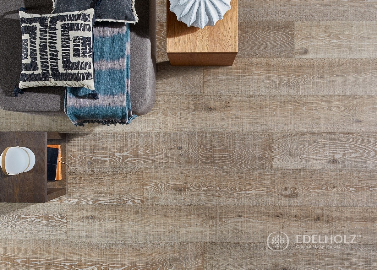 La superficie quasi priva di nodi della nostra qualità più pregiata, irradia eleganza e armonia . La venatura sottile e il motivo cromatico uniforme, esaltano ulteriormente questo effetto e lo rendono uno dei favoriti, in particolare per i pavimenti in parquet a spina di pesce EDELHOLZ.