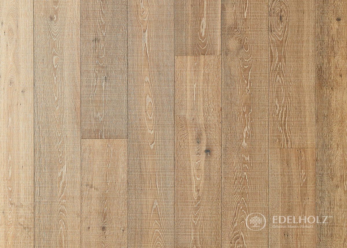 Una qualità molto apprezzata che colpisce per la sua naturale vivacità con nodi e crepe, che crea un aspetto superficiale emozionante, specialmente con le nostre plance di rovere di grande formato. Nodi piccoli e grandi, riparati con cura e qualche pezzo occasionale di alburno, combinati con texture di legno distintive e un vivace gioco di colori, creano una ricca diversità che è molto apprezzata dai clienti EDELHOLZ.