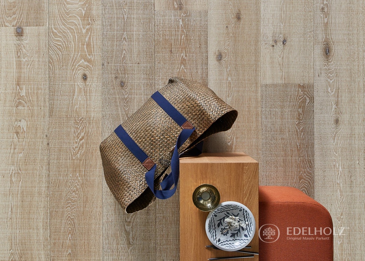 La superficie quasi priva di nodi della nostra qualità più pregiata, irradia eleganza e armonia . La venatura sottile e il motivo cromatico uniforme, esaltano ulteriormente questo effetto e lo rendono uno dei favoriti, in particolare per i pavimenti in parquet a spina di pesce EDELHOLZ.