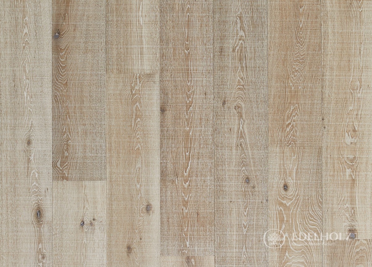 Una qualità molto apprezzata che colpisce per la sua naturale vivacità con nodi e crepe, che crea un aspetto superficiale emozionante, specialmente con le nostre plance di rovere di grande formato. Nodi piccoli e grandi, riparati con cura e qualche pezzo occasionale di alburno, combinati con texture di legno distintive e un vivace gioco di colori, creano una ricca diversità che è molto apprezzata dai clienti EDELHOLZ.