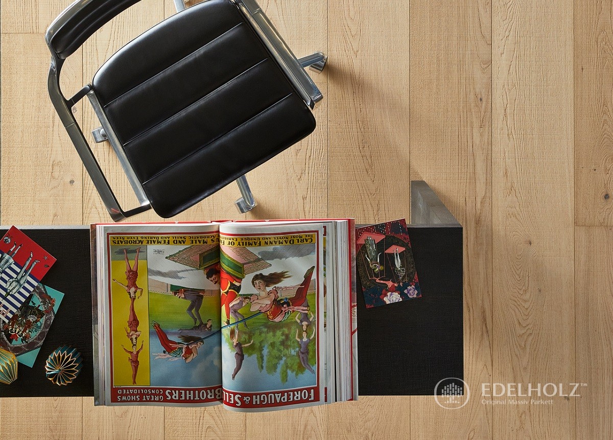 La superficie quasi priva di nodi della nostra qualità più pregiata, irradia eleganza e armonia . La venatura sottile e il motivo cromatico uniforme, esaltano ulteriormente questo effetto e lo rendono uno dei favoriti, in particolare per i pavimenti in parquet a spina di pesce EDELHOLZ.